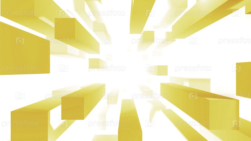 Анимация прямоугольников, летающих в потоке. Дизайн. Поток 3D-геометрических платформ, летящих в перспективу. Линии прямоугольника движутся по течению на белом фоне