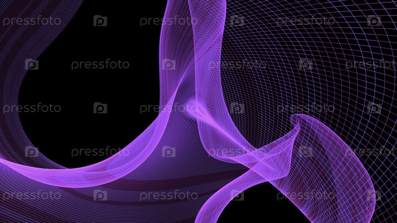 Черный фон.Движение.Ясные фиолетовые узоры в 3D-анимации, вращающиеся вокруг своей оси