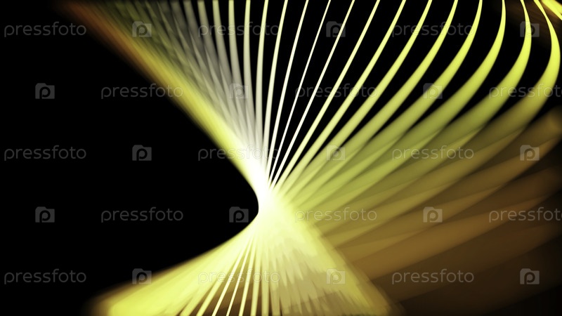 Абстрактные желтые неоновые линии, скручивающиеся в спиральном туннеле на черном фоне, бесшовная петля. Анимация. 3D красочные узкие извилистые линии, движущиеся медленно