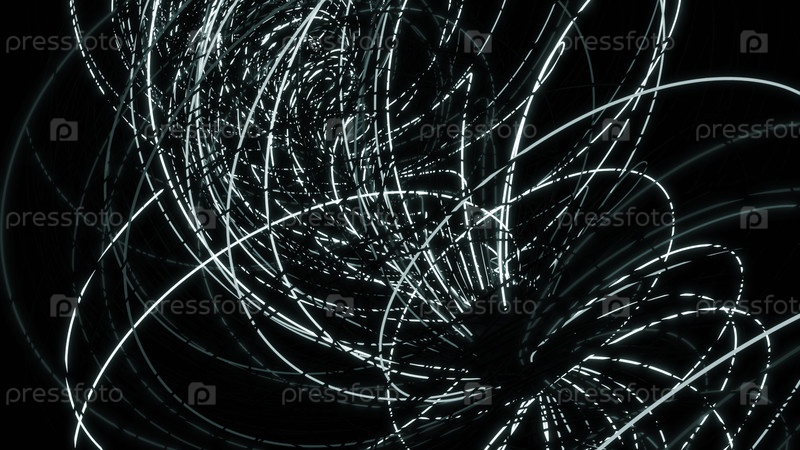 Абстрактный бирюзовый запутанные узкие линии, летающие и вращающиеся на черном фоне, бесшовная петля. дизайн. ураган в форме спирали