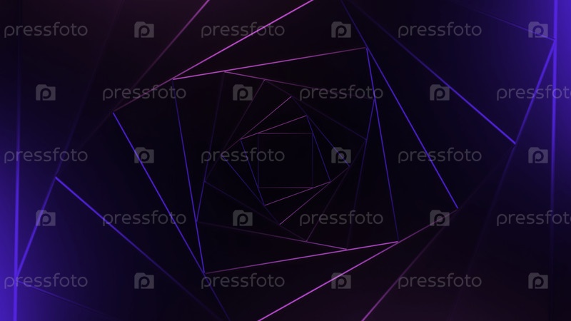 Бесконечный квадратный неоновый туннель из вращающихся силуэтов градиента. Дизайн. Гипнотический крутящийся коридор