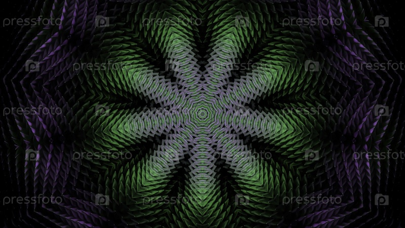 Анимационный абстрактный технологический фон в футуристическом киберпространстве. Дизайн. Красочный калейдоскоп в форме звезды