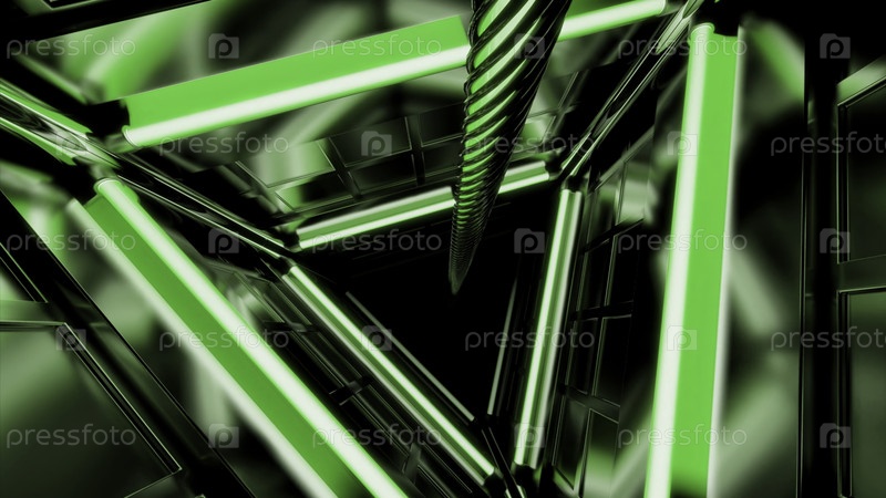 Розовый и зеленый фон.Дизайн.Тоннель треугольной формы, который движется в противоположном направлении и выполнен с помощью компьютерной графики