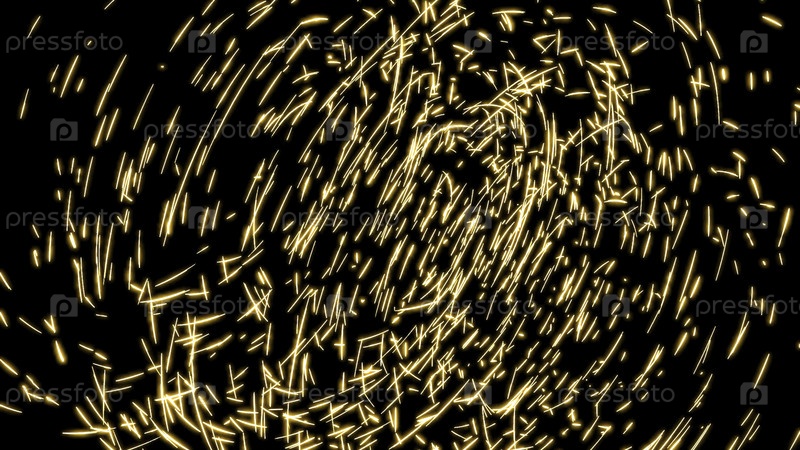 Вихревой поток с неоновыми точками. Дизайн. Лазерные точки и лучи движутся в потоке. Круговое хаотическое течение светящихся частиц
