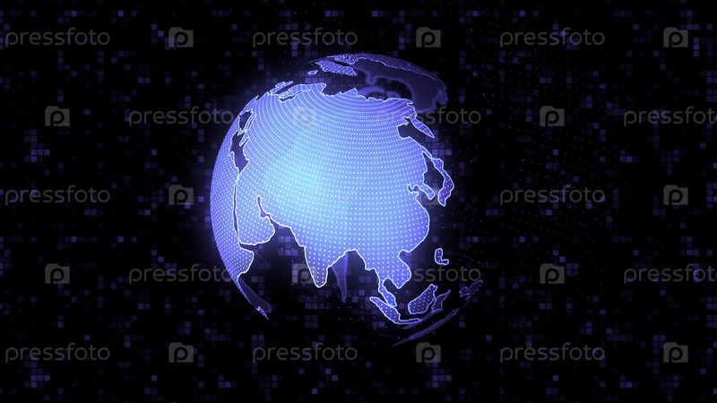 Черный футаж с абстракцией. движение. фон, на котором полушарие выделяется в синем и темно-фиолетовом цветах как земля со специальной территорией. высокое качество 4k кадры