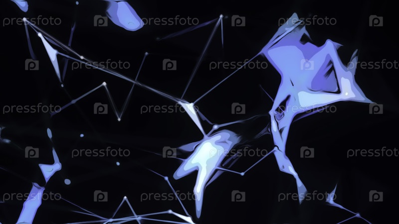 Электронная сеть из треугольных линий.Движение.Перемещение киберсети в 3D-пространстве на черном фоне.Триугольные киберсетевые линии в 3d-пространстве