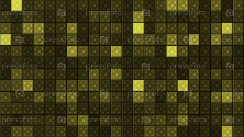 Фон квадратных мигающих золотых цветов. Движение. Красивый яркий фон с желтыми мигающими квадратами. Мозаичный фон мигающих квадратов