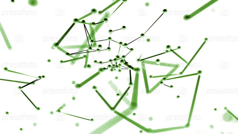 Красочные частицы, соединенные линиями, летящими в сторону камеры. Дизайн. Плексус динамический фон