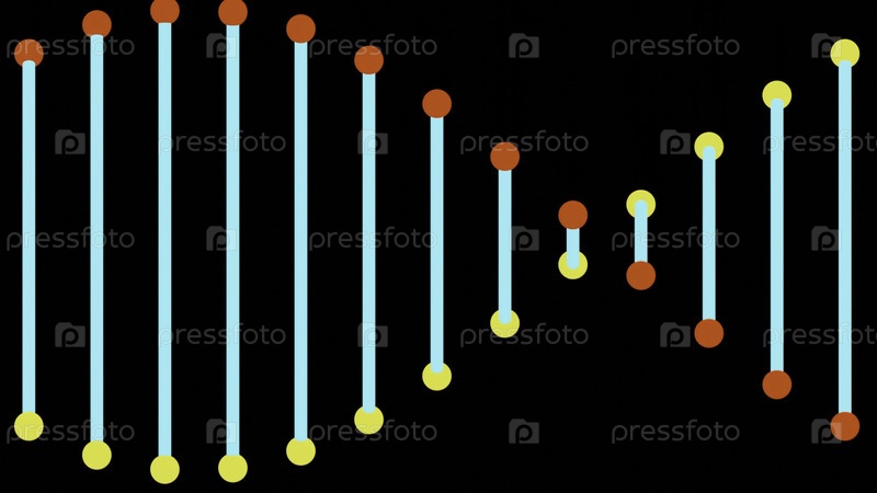 Простая анимация движущейся ДНК. Дизайн. Красивая вращающаяся структура ДНК из линий и точек. Цветная мультипликационная ДНК вращается на черном фоне