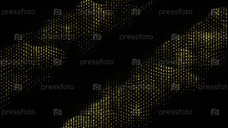 Движущиеся волны светящихся точек на черном фоне. Дизайн. Яркие электронные точки движутся волнами в киберпространстве. Световые волны от светлых точек