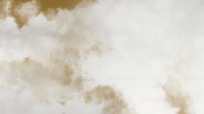 Полет через сказочное оранжевое небо и большие белые облака.Движение.Прекрасный райский фон на небесах