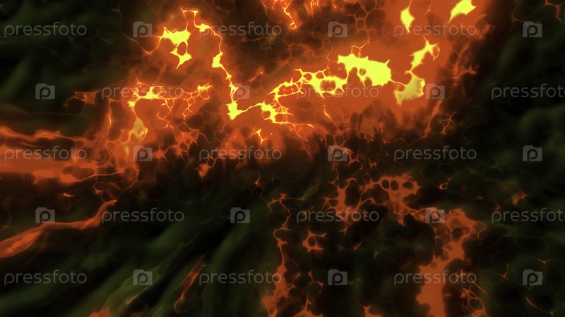 Движение в лавовом туннеле.Движение. Головокружительный вихрь лавы с огнем и дымом. Поток лавы и дым в движении