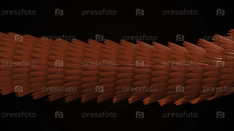 Абстрактная анимация многоцветных 3D глянцевых чешуек змей или драконов, плавно движущихся на черном фоне