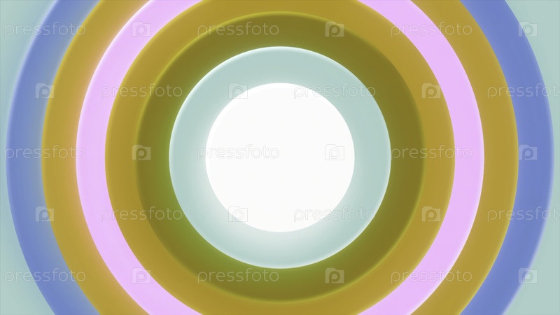 Фонд пульсирующих цветных колец. Движение. Цветовые круги пульсируют в медленном ритме. Фон цветовых кругов, движущихся центрально и пульсирующих