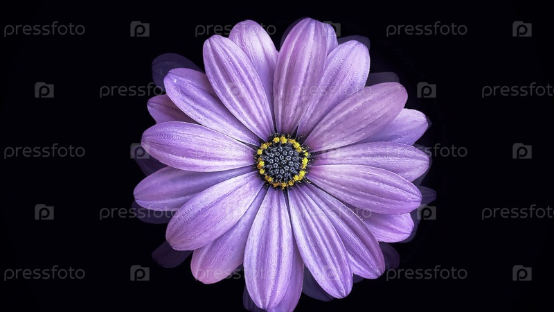 Большой фиолетовый бутон ромашки, движущийся на черном фоне