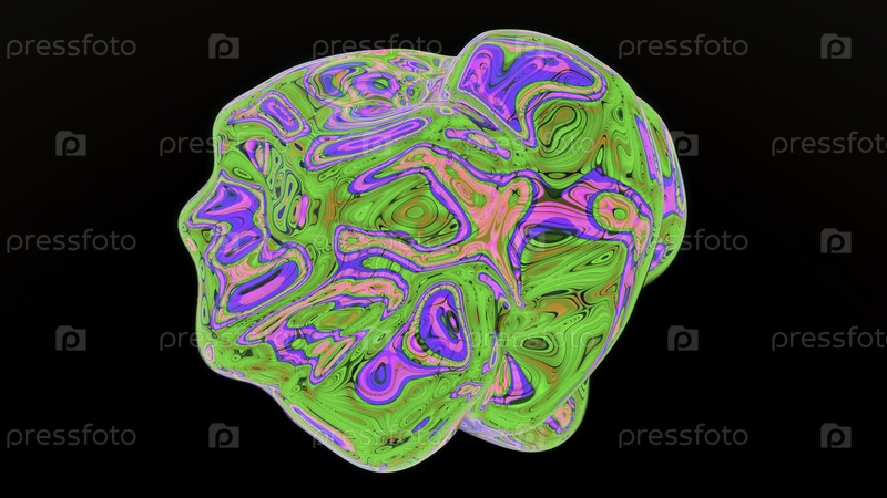 Жидкий шар кислотных цветов. Дизайн. Движущаяся жидкость в 3D круге с яркими цветами. Ликвидная форма движется и блестит кислыми цветами