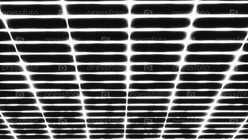 Яркая светящаяся сетка в виртуальном пространстве.Движение.Простая квадратная сетка на черном фоне.Виртуальная сеть квадратов светится в пространстве