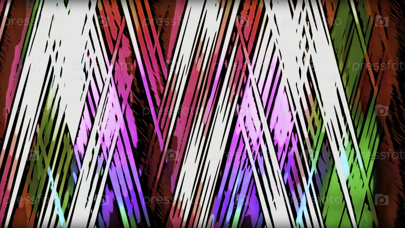 Абстрактное пересечение ярких многоцветных линий создает рисунок треугольников.Движение.Контрастные диагонально протекающие мазки краски