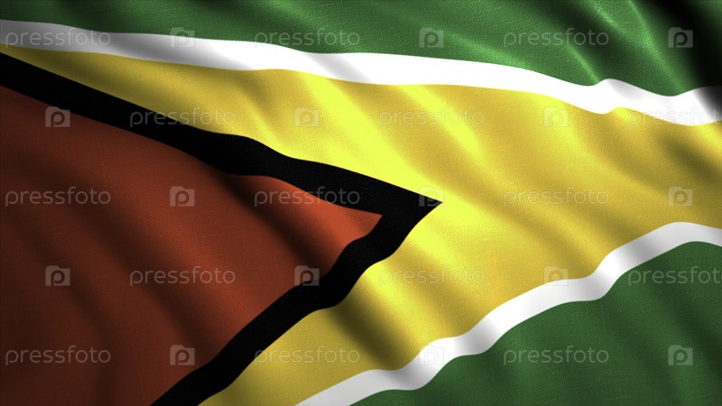 Флаг Гайаны, размахивающийся на ветре.Движение.Национальный флаг с очень подробной текстурой ткани, летящей на ветру