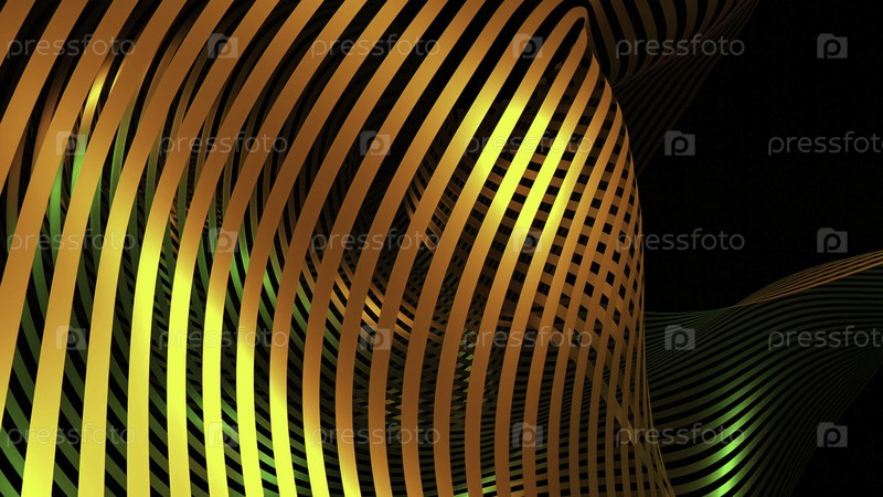 3D-фон с волнистыми кривыми полосами. Дизайн. Прекрасные 3d-кривые полосы в волновом потоке ткани. Фабричный поток изгибается от полос