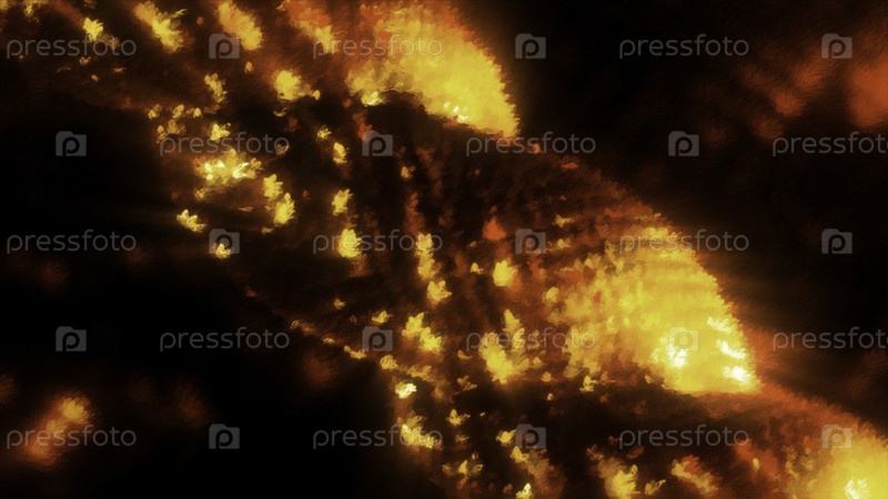 Ближайшее изображение абстрактной изогнутой металлической цепи, сделанной из крошечных блестящих частиц.Движение.Абстрактная металлическая цепь сияющих точек