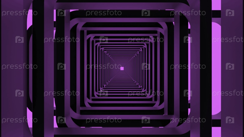 Движение по квадратному 3D-туннелю. Дизайн. 3D-линии в квадратном туннеле с цветным фоном. Пересекающийся трафик через квадратный тоннель