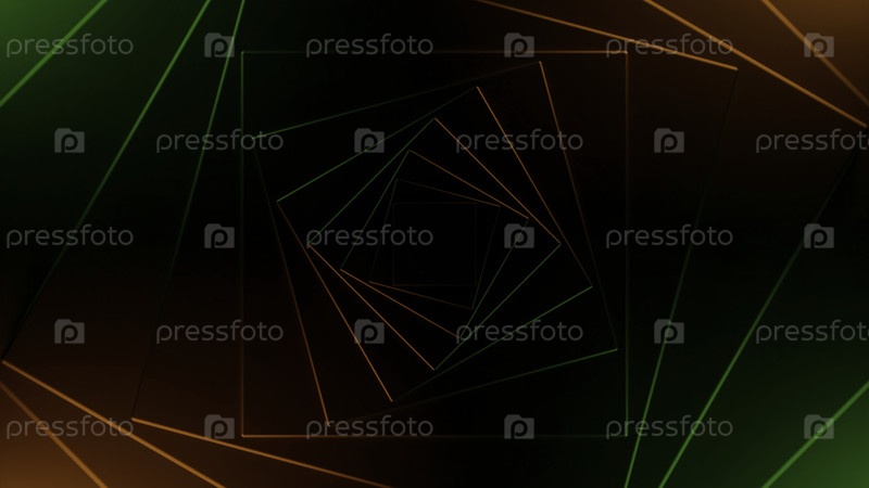 Абстрактная оптическая иллюзия с огнями и геометрическими силуэтами, создающими эффект тоннеля. Дизайн. Движение внутри трансформирующегося коридора