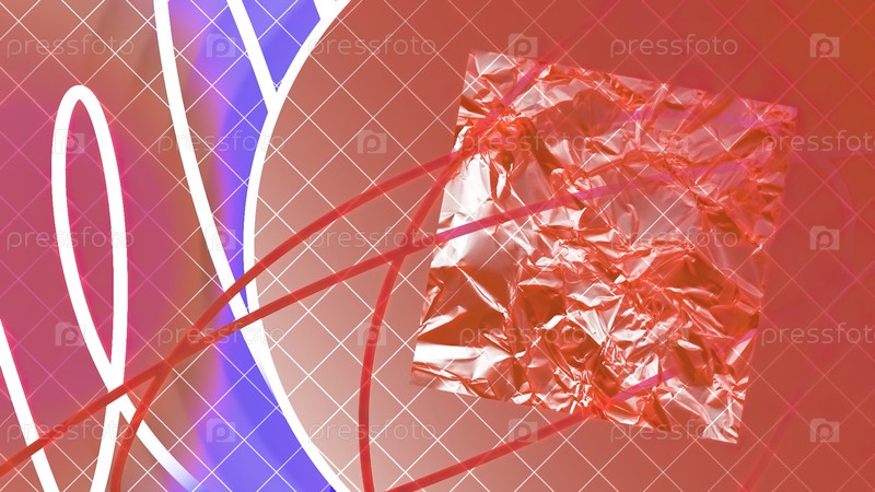 Свернутый квадратный лист бумаги внутри красного круга с изгибающимися линиями позади. Движение. Красочная абстракция с формами