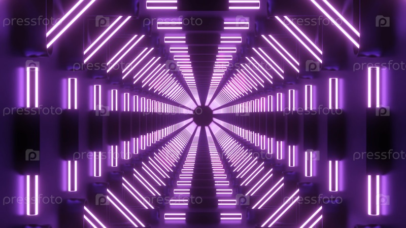 Медленный полет через абстрактный туннель 3D инопланетных технологий, бесшовная петля. дизайн. светящаяся оптическая иллюзия, симметричный коридор