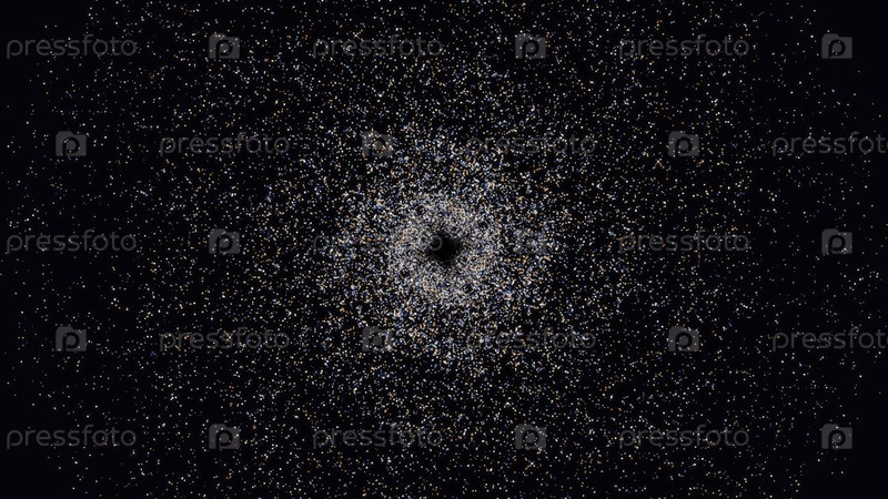 Текущее спиральное поле частиц, вращающиеся точки на черном фоне.Анимация.Концепция пространства и времени, красивый вихрь, образованный крошечными летающими точками