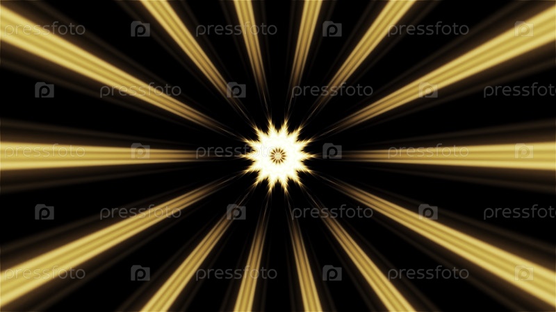 Полоски световых лучей, распространяющиеся по всем сторонам. Движение. Яркая светящаяся звезда с мигающими пучками света
