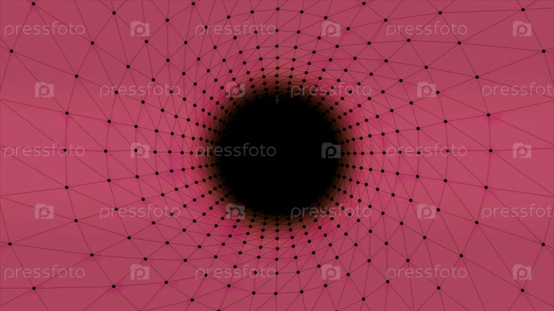 Абстрактный анимированный фон тоннеля сплетения. Движение. Соединенные линии и точки создают круглый туннель с источником света в конце
