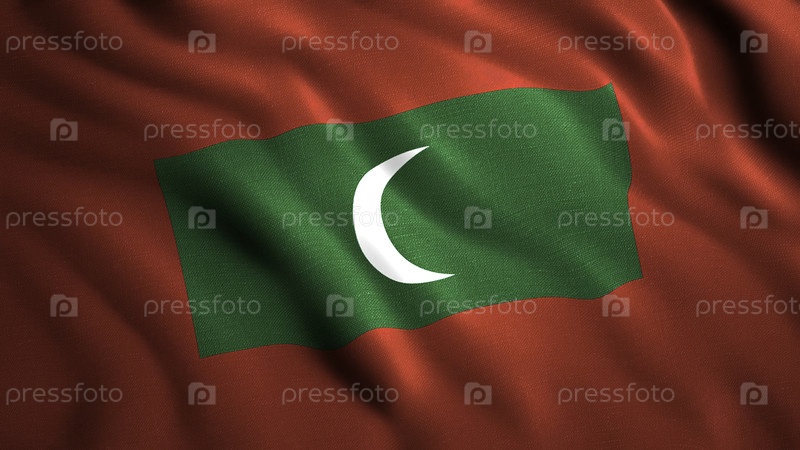 Мальдивский флаг ткань, раскачивающаяся в ветре. Движение. Полумесяц и на зеленом и красном фоне