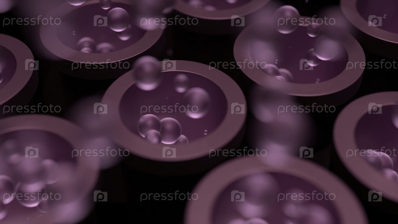 Дизайн.Маленькие розово-окрашенные трубы, высвобождающие небольшие пузыри в абстракции.Высококачественная запись 4k