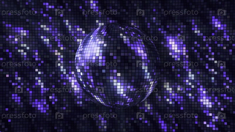 Яркий фон с вращающимся дискотечным шаром. Движение. Дискотекфон с блестящими радужными цветами и вращающимся мячом. Дискотечный шар с красивыми цветовыми сияниями на повторяющемся фоне