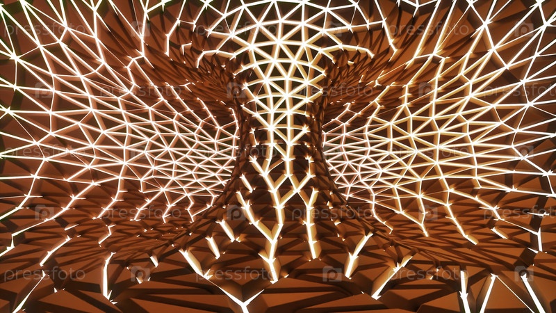 3D вращающаяся петля с светящимися линиями Научно-фантастическое дерево со спиральным пространством и сияющими трещинами
