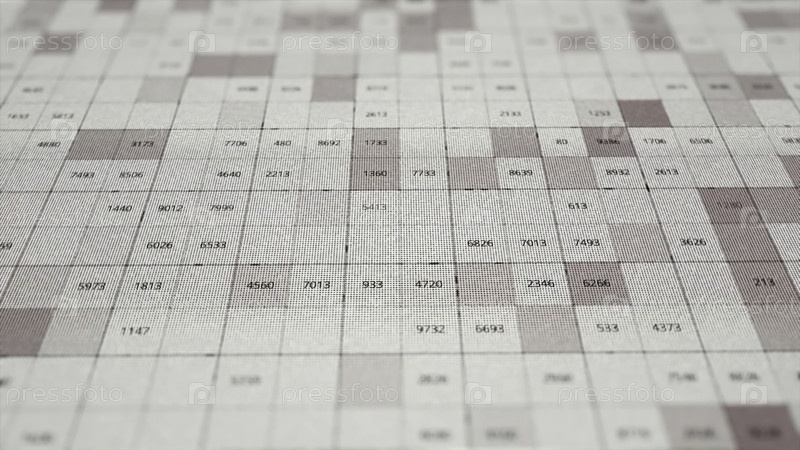 Абстрактная обработка данных с помощью белых и розовых мигающих квадратов. Научно-исследовательская концепция, цифрово генерируемые небольшие информационные ячейки