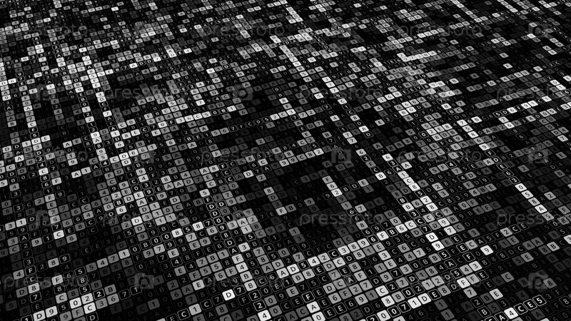 Фон с ячейками и изменяющимися числами. Анимация. Компьютерное поле с генерируемыми цифрами и буквами пульсирует. Поле программы с изменением букв и цифр в клетках