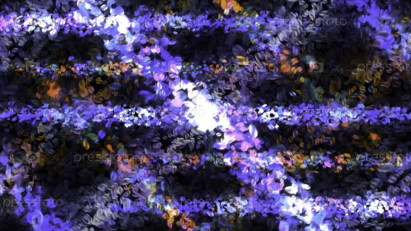 Пересекающиеся потоки света и энергетические потоки оранжевого и фиолетового цветов на черном фоне, бесшовная петля. Движение. Падение красивых пятен