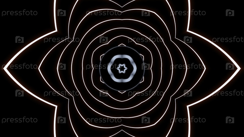 Декоративный цветок, распространяющий фрактальные формы. Дизайн. Красивая светящаяся неонная звезда или цветок на черном фоне