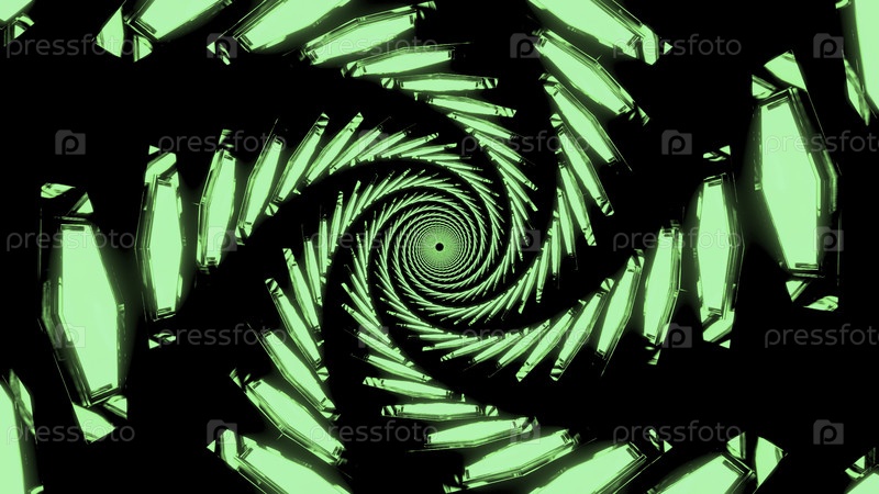 Темный круглый туннель, движущийся на расстоянии, абстрактный геометрический фон.Дизайн.Абстрактное зеленое свечение, длинный тоннель