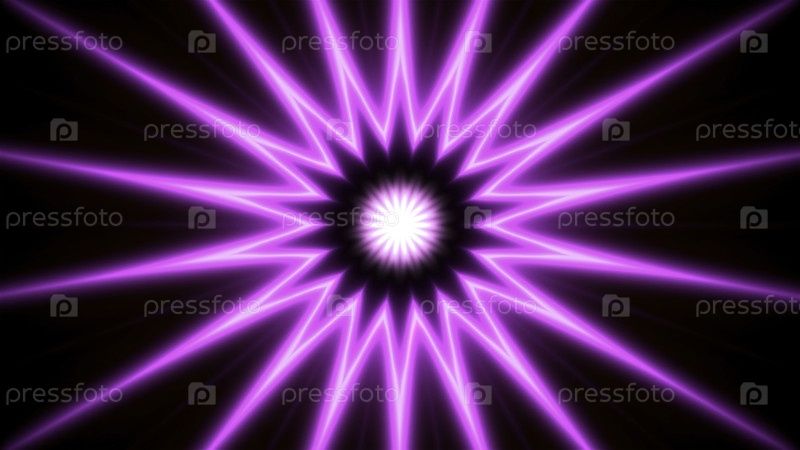 Психоделический мигающий неонный рисунок с кольцами и линиями. Движение. Яркий мигающий рисунок с неоновыми кругами и лучами на черном фоне. Звездочный рисунок движется и мигает с неоновыми линиями