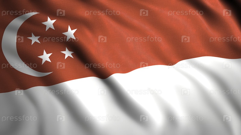 Фон размахивающегося флага страны. движение. красивая 3D-анимация с перемещающимся полотном флага. фон для патриотического праздника с флагом Сингапура