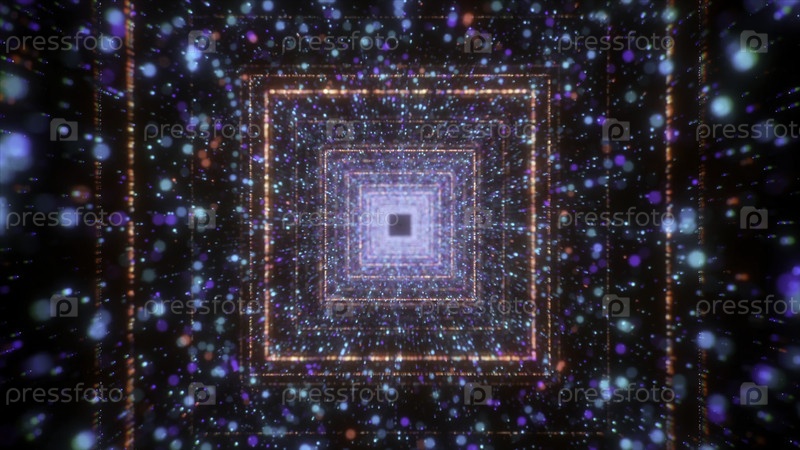 Огромные квадраты с маленькими частицами, плавающими вокруг. Движение. Большинство геометрических форм, которые составляют туннель, который движется вперед в абстракции. Высококачественный 4k-фильм