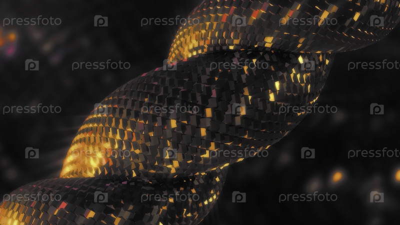 Движущаяся 3D-линия в стиле змеи.Движение.Прекрасный турникет 3d, вращающийся на блестящем фоне.Двигающаяся спираль с глянцевой мозаикой из змей