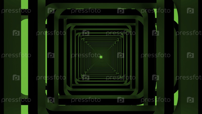 Зеленый коридор.Дизайн.Яскраво-зеленая абстракция, которая составляет длинный путь и медленно движется вперед