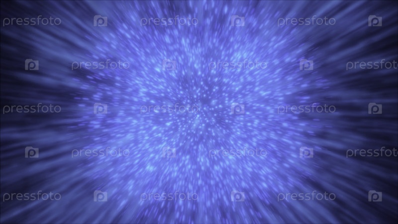 Синее неонное ядро, распространяющееся и потребляющее космическую энергию с движущимися частицами. Движение. Абстрактная взрывающаяся сфера