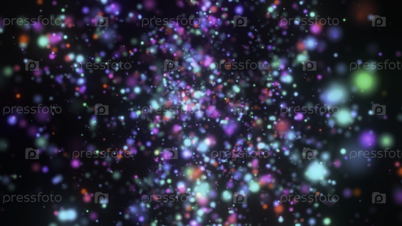 Абстрактные красочные светящиеся частицы создают яркий размытый фоновый боке