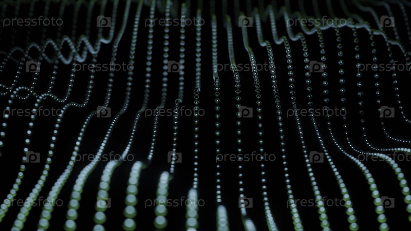 Яркий зеленый цифровой дизайн с волнообразными линиями и точками в абстрактном рисунке