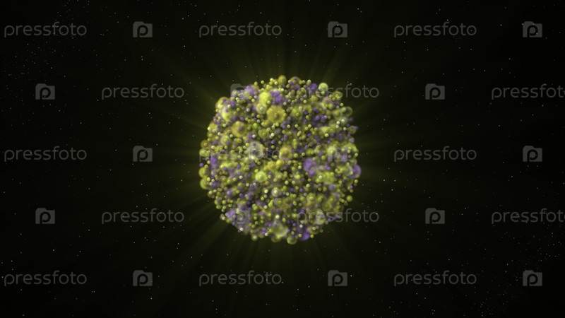 Энергетическая спираль сформировалась в шар в пространстве.Движение.Светящийся шар из яркой спирали космического потока.Формирование плотного космического шара из энергетической спирали